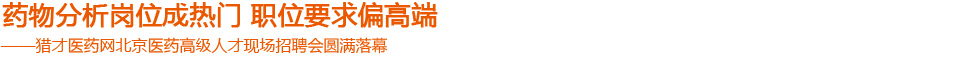 2013年3月9日,由獵才醫藥網主辦的北京醫藥高級人才現場招聘會成功舉辦。共邀請來天津天士力醫藥營銷集團有限公司、山西振東制藥股份有限公司、甘肅成紀生物藥業有限公司、江西青峰醫藥投資集團有限公司、深圳市一體醫療科技股份有限公司、北京北陸藥業股份有限公司、西藏海思科藥業集團股份有限公司、北京海步國際醫藥科技發展有限公司等諸多醫藥企業。本次招聘會熱門職位有,藥物分析工程師、研發總監、藥物制劑總監、銷售總監、市場總監、產品經理、制藥工藝工程師等。