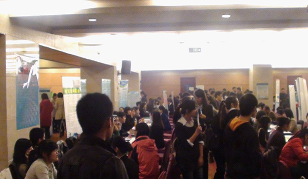 再來看看火熱的招聘會現場,一些學生都在排隊,等得很心急吧,究竟花落誰家呢?相信不少企業都招到了合適的人才吧。 |