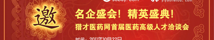 茲定于2011年10月22日09:00-12:00時(shí),在上海恒升半島國(guó)際酒店舉行“2011年十月上海•獵才醫(yī)藥網(wǎng)首屆醫(yī)藥高級(jí)人才招聘會(huì)”,誠(chéng)邀您的參加!