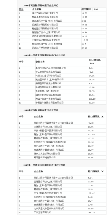 6月2日,2017中國(國際)醫用耗材大會媒體交流會在北京舉行,中國醫藥保健品進出口商會發布了2016年度我國醫用耗材出口企業排名、2017年一季度我國醫用耗材出口企業排名情況,具體如下: