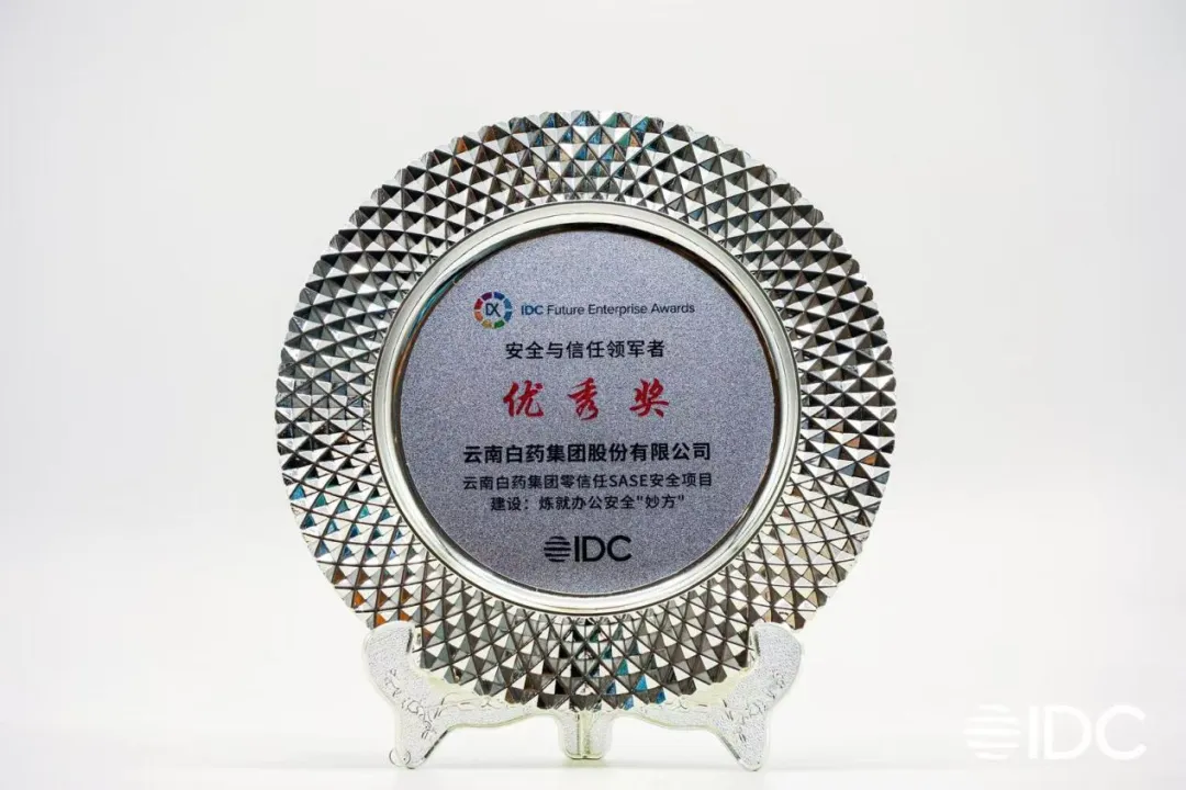 10月17日,在2025 IDC中國CIO峰會暨數字化轉型年度頒獎典禮上,云南白藥集團憑借信息安全信任體系建設方面取得的良好成效,榮獲2025年IDC中國未來企業大獎優秀獎 “安全與信任領軍者” 獎項。
